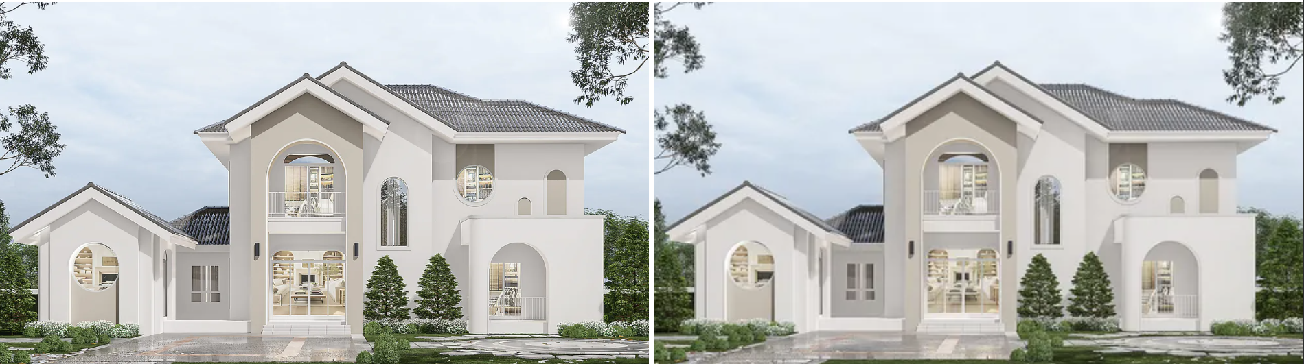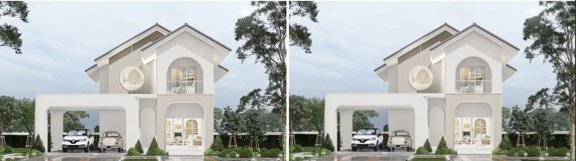 บ้านสองชั้นดีไซน์โมเดิร์นโคโลเนียล ใช้เส้นสายโค้งมนและหน้าต่างวงกลมเป็นเอกลักษณ์ที่ผสมผสานความเป็นบ้าน Minimal Japanes Style