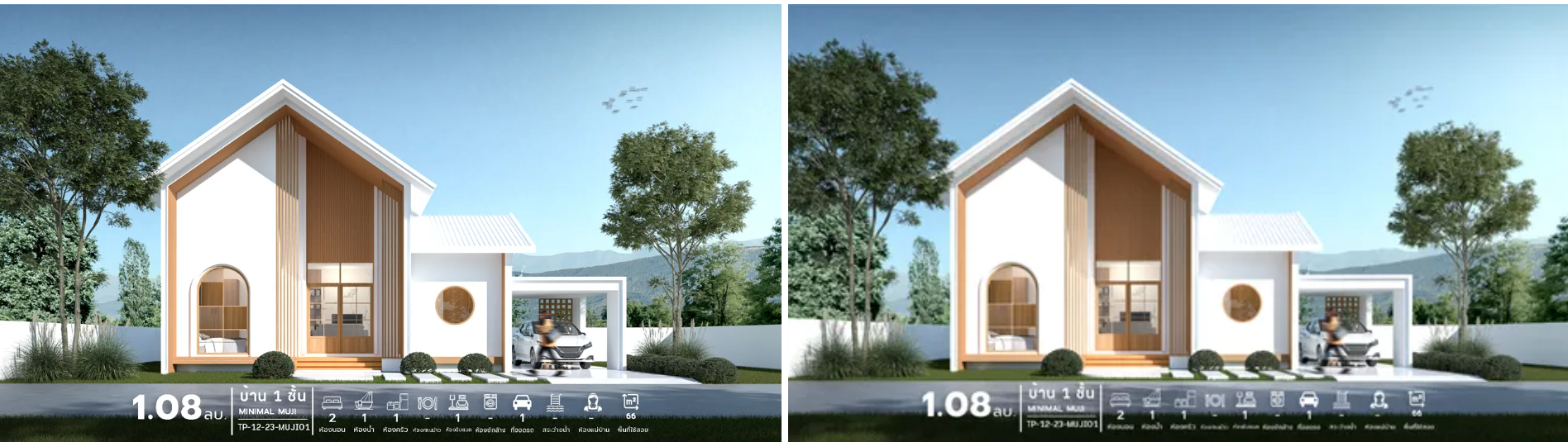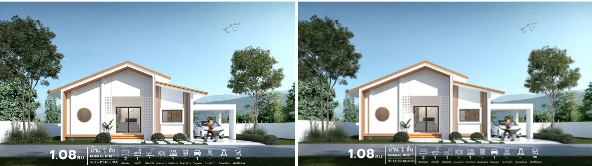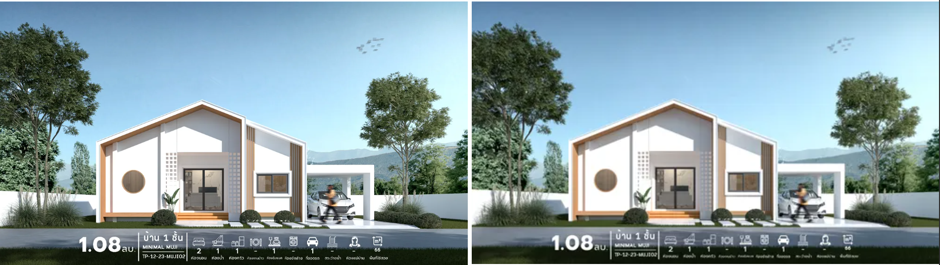 บ้านเดี่ยวชั้นเดียวสไตล์มินิมอล-มูจิ ที่รวมความเรียบง่ายกับฟังก์ชันใช้งาน พื้นที่ภายในจัดได้ครบ 3 ห้องนอน 2 ห้องน้ำ พร้อมที่จอดรถ 2 คัน ครบถ้วนสำหรับครอบครัว