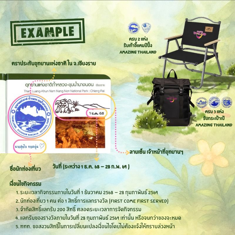 ช่วงจัดกิจกรรมคือ 1 ธันวาคม 2568 – 28 กุมภาพันธ์ 2569 แค่คุณเข้าอุทยานที่ร่วมรายการ แล้วยื่น Passport ให้เจ้าหน้าที่ประทับตราเก็บไว้เป็นคอลเลกชันของคุณเอง