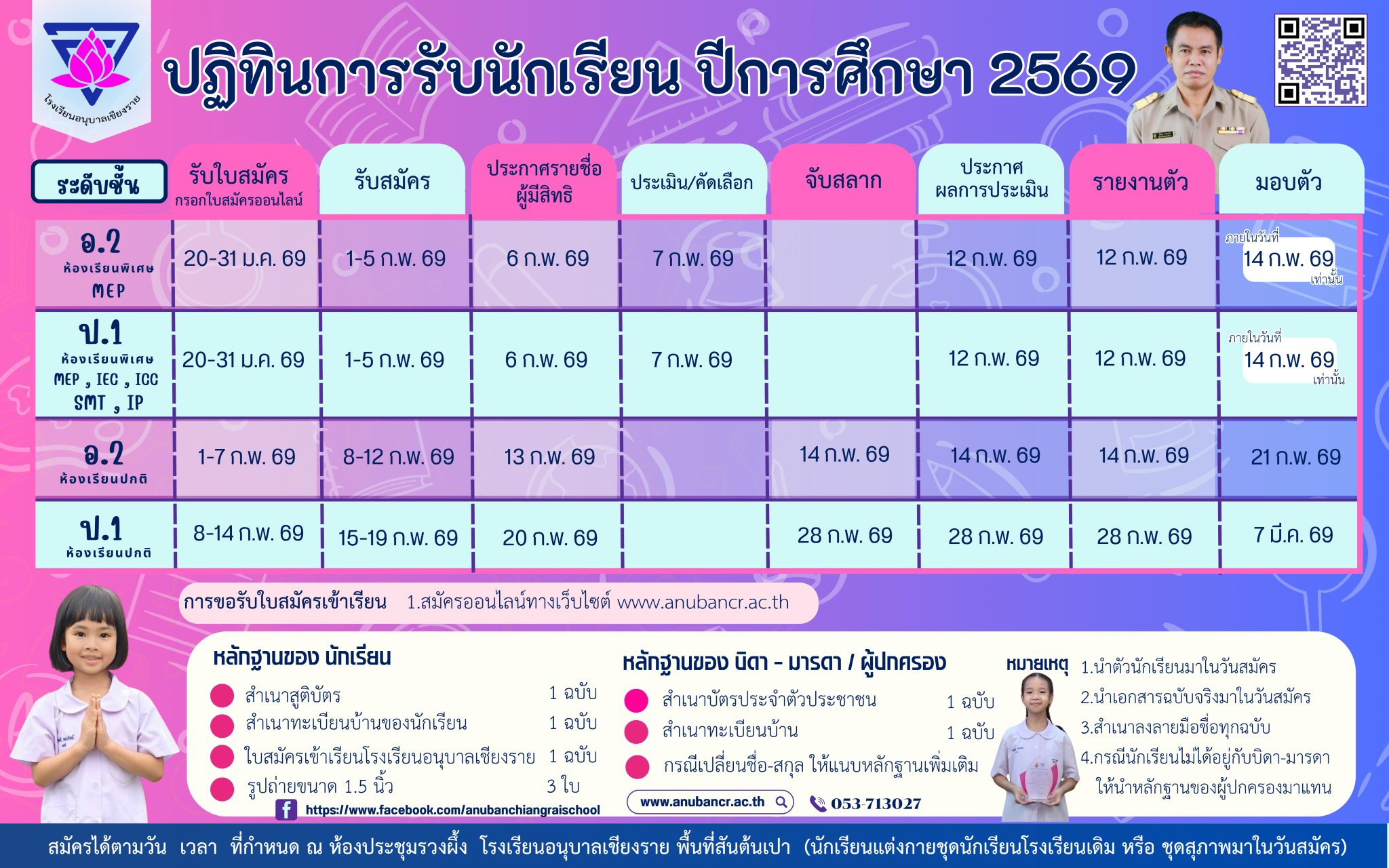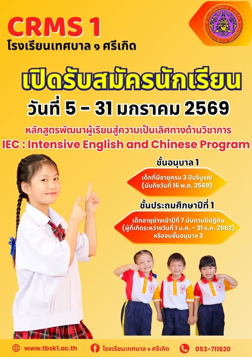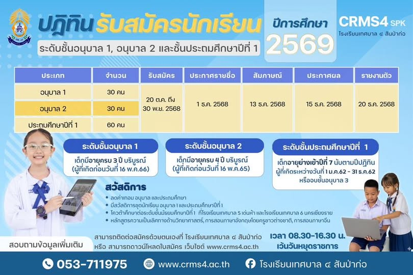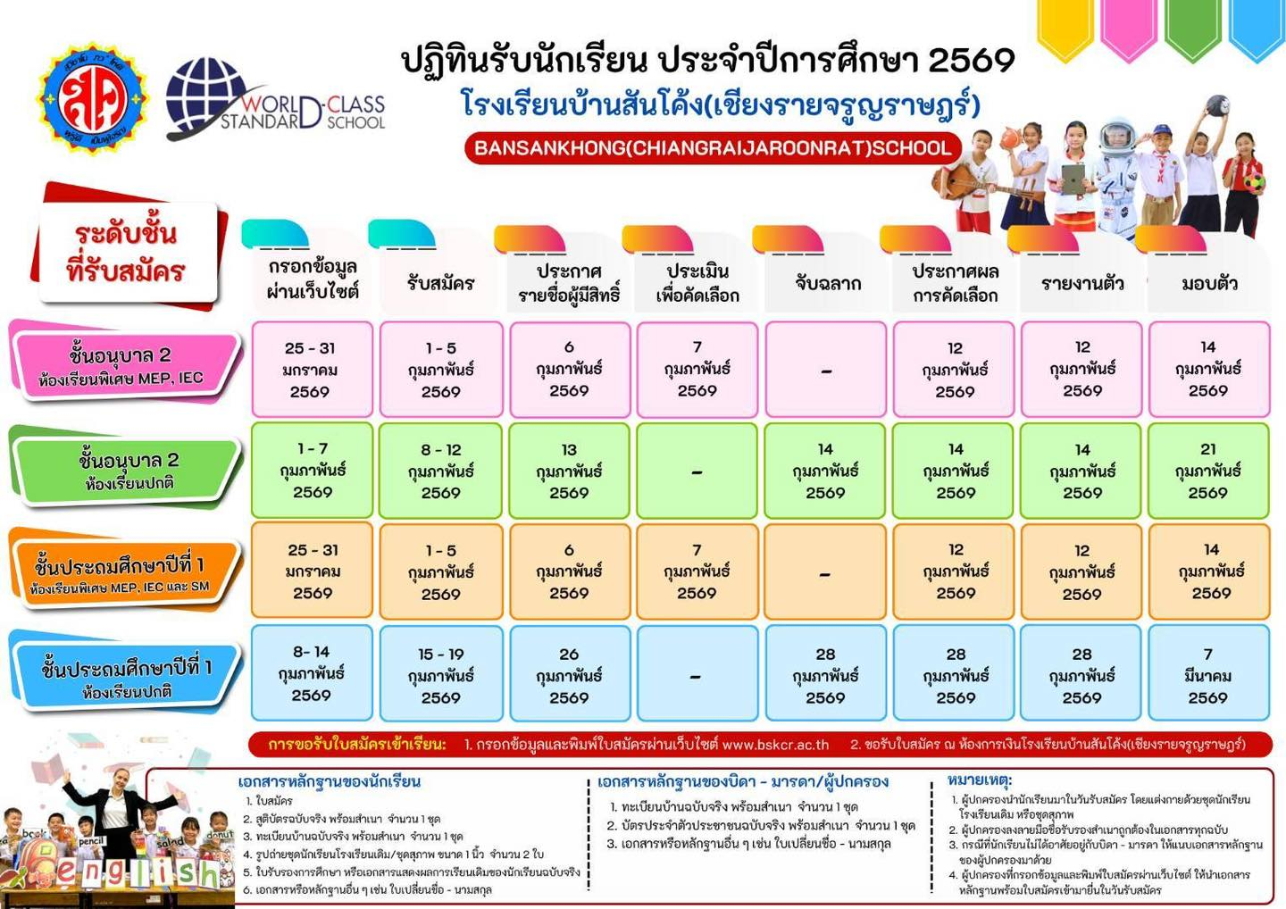 ช่วงเวลาเปิดรับสมัครเรียนของโรงเรียนประถมในเชียงราย ปี 2569