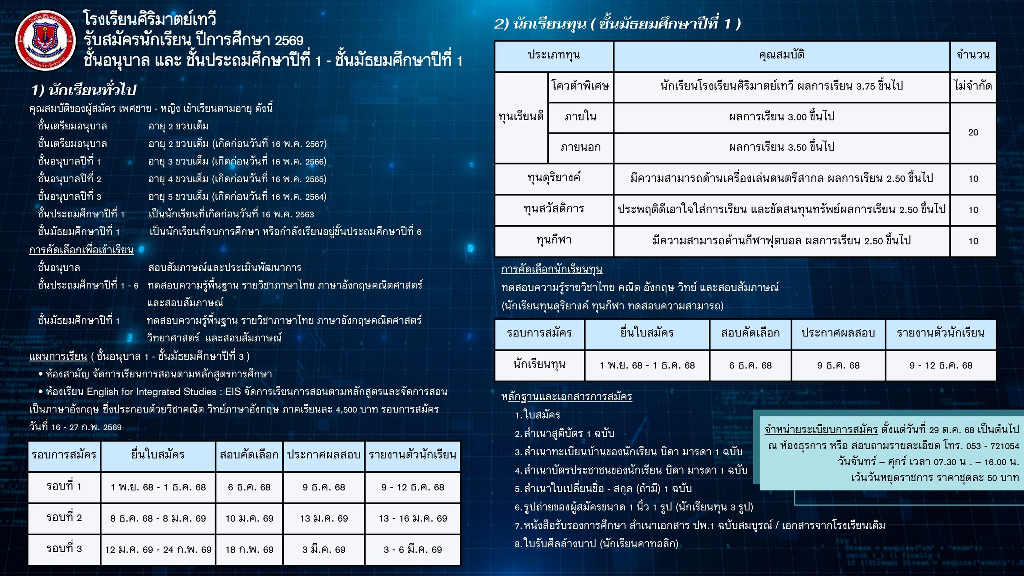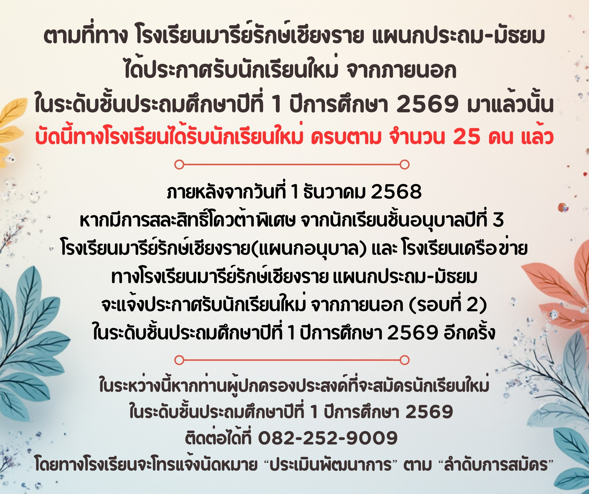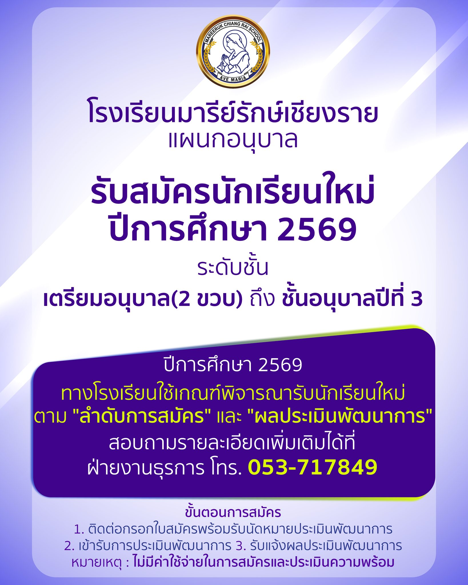 ช่วงเวลาเปิดรับสมัครเรียนของโรงเรียนประถมในเชียงราย ปี 2569