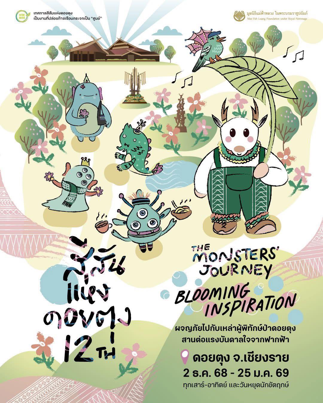 ดอยตุงในช่วงปลายปีมักมีเสน่ห์พิเศษแบบที่อธิบายยาก ทั้งอากาศเย็นสบาย คนอบอุ่น และบรรยากาศที่เต็มไปด้วยสีสันของดอกไม้และงานคราฟต์จากชุมชนบนดอยต่าง ๆ ซึ่งปีนี้ เทศกาลสีสันแห่งดอยตุงก็กลับมาอีกครั้งในชื่อ Colors of Doi Tung 12th The Monsters’ Journey Blooming Inspiration ที่ตั้งใจให้ทุกคนออกเดินทางไปผจญภัยกับเหล่าผู้พิทักษ์ป่าดอยตุง พร้อมย้อนรำลึกถึงแรงบันดาลใจจากงานพัฒนาดอยตุงที่สืบเนื่องมายาวนาน