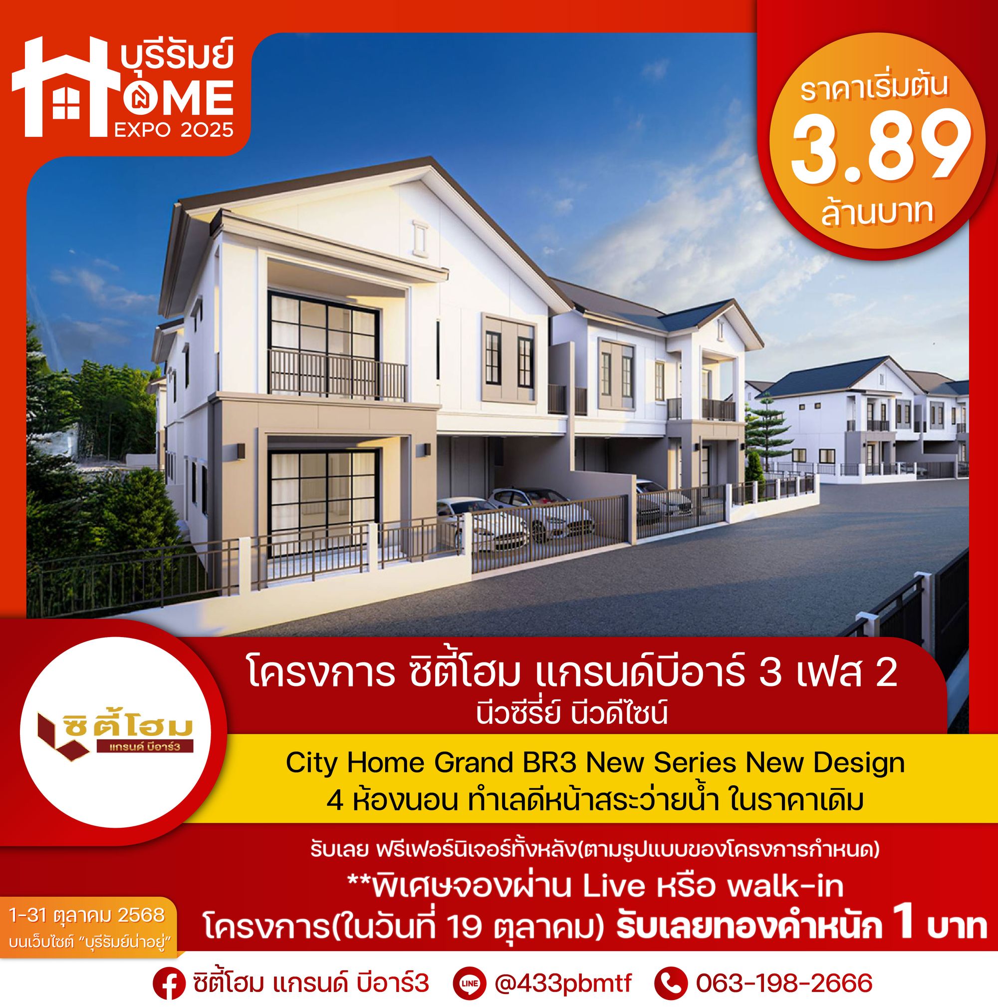 บุรีรัมย์น่าอยู่ Home Expo 2025 - Online Experience งานบ้านบุรีรัมย์ ที่ครบที่สุดกำลังจะกลับมาอีกครั้ง! รวมที่สุดของโครงการบ้านบุรีรัมย์ บริษัทรับสร้างบ้านมืออาชีพ และโปรสินเชื่อบ้านดอกเบี้ยพิเศษ พบกันวันที่ 1–31 ตุลาคม 2568 แล้วคุณจะรู้ว่า “บ้านในฝัน” มีอยู่จริง และเป็นเจ้าของได้ง่ายกว่าที่คิด! 💡