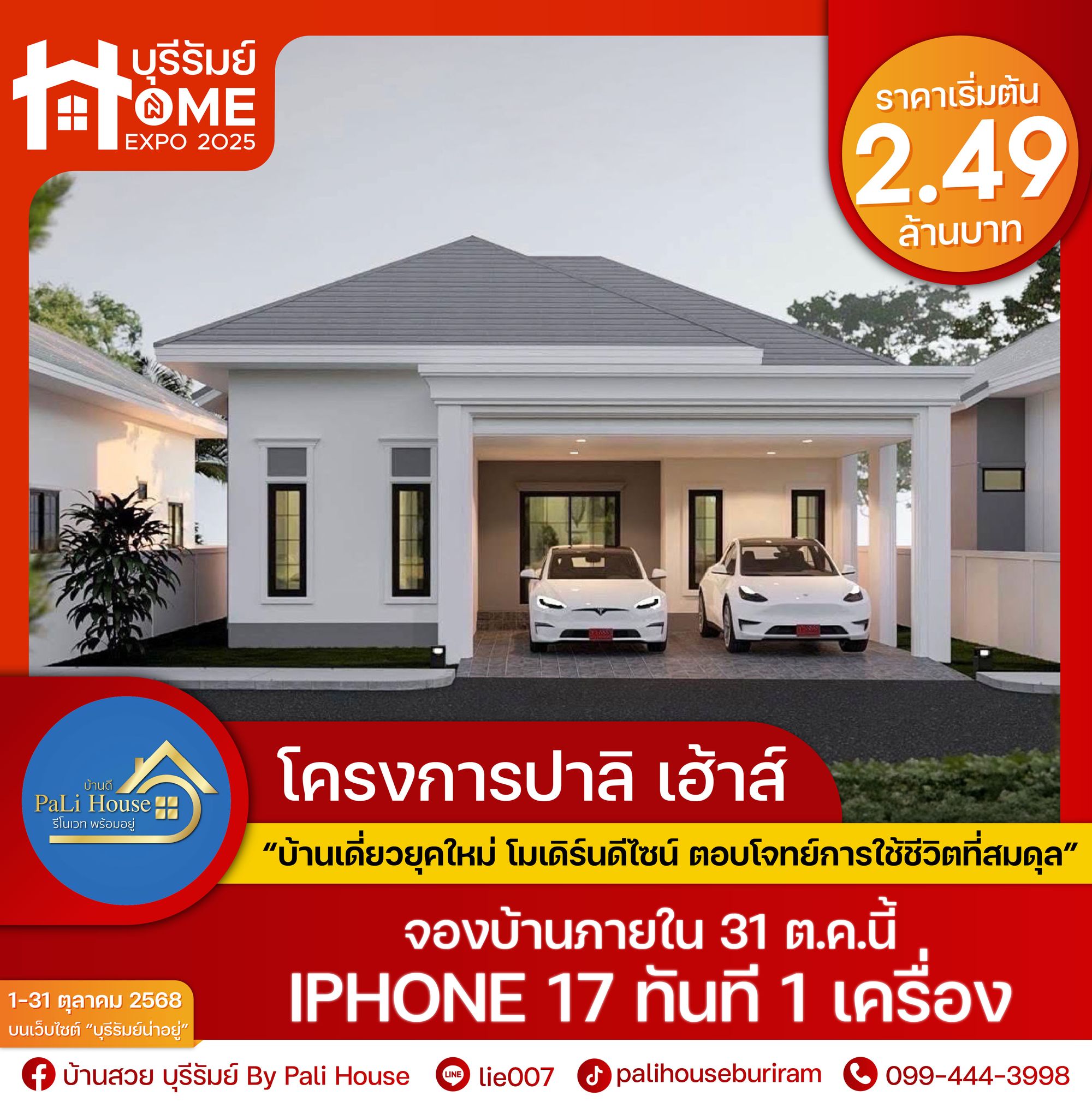 ใครกำลังหาบ้านในฝัน โครงการที่โดนใจ หรือโปรโมชันบ้านแรงๆในรอบปี 1-31 ตุลาคมนี้ ห้ามพลาด! “บุรีรัมย์น่าอยู่ 𝗛𝗼𝗺𝗲 𝗘𝘅𝗽𝗼 𝟮𝟬𝟮𝟱 - 𝗢𝗻𝗹𝗶𝗻𝗲 𝗘𝘅𝗽𝗲𝗿𝗶𝗲𝗻𝗰𝗲” งานบ้านเพื่อคนบุรีรัมย์ที่กลับมาอย่างยิ่งใหญ่ จัดเต็มกว่าเดิม!