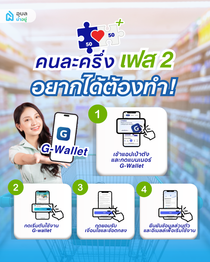 🙋♂️ อุบลน่าอยู่แนะนำให้สมัครเริ่มต้นใช้งาน G-Wallet ไว้ก่อนวันที่ทางรัฐจะเปิดให้ลงทะเบียนรับสิทธิ์คนละครึ่ง เพื่อความสะดวกและรวดเร็วในการรับสิทธิ์