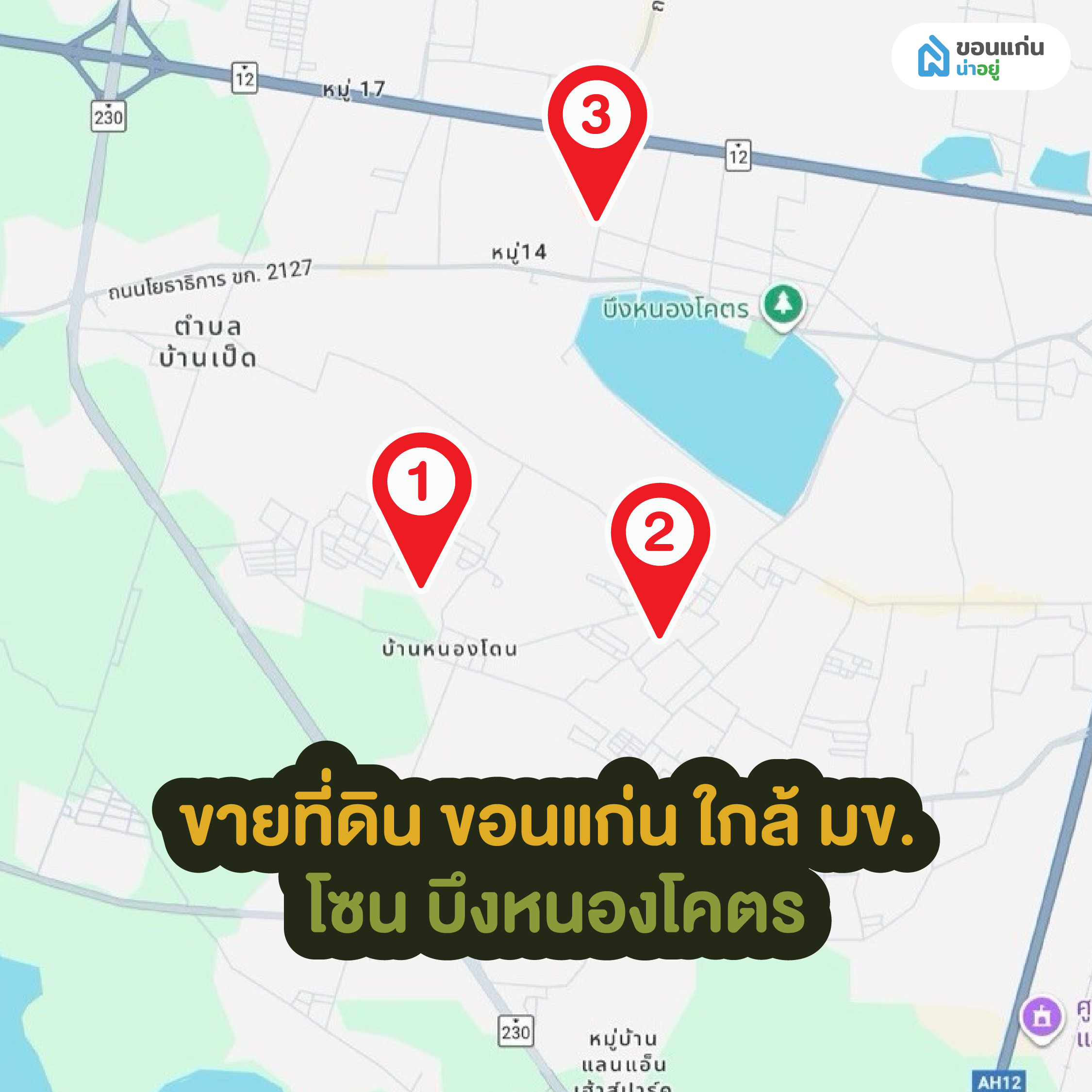 โซนบึงหนองโคตร เป็นทำเลใหญ่ที่กำลังเติบโตอย่างต่อเนื่อง มีสิ่งปลูกสร้างและโครงการใหม่ ๆ เกิดขึ้นมากมาย เหมาะสำหรับการลงทุนทั้งเชิงพาณิชย์และที่อยู่อาศัย ใครที่กำลังมองหาที่ดินแปลงใหญ่เพื่อพัฒนาโครงการถือว่าไม่ควรพลาดย่านนี้ น้องน่าอยู่ได้รวบรวม ประกาศขายที่ดิน ขอนแก่น ใกล้ มข. โซน บึงหนองโคตร มาให้คุณเลือกแล้วครับ