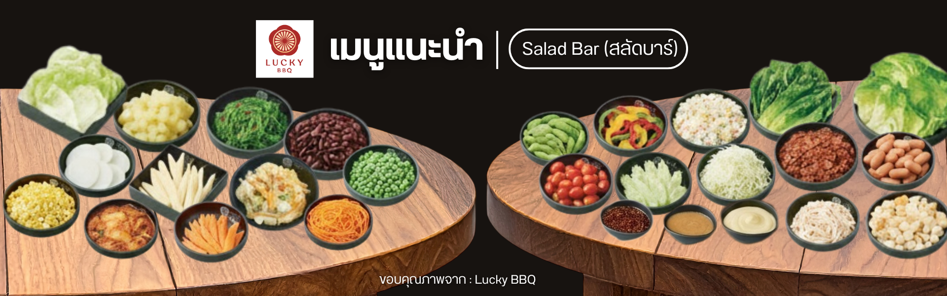 - สลัดบาร์ & ยำแซ่บ (Salad Bar): ใครอยากตัดเลี่ยนต้องมามุมนี้ ผักสดๆ กรอบๆ มีให้เลือกเพียบ ทั้งผักคอส, บัตเตอร์เฮด, หรือจะเป็น 'กิมจิ' รสเด็ดก็มี! เพิ่มความกรุบกรอบด้วย เบคอนกรอบ และ ขนมปังกรอบ (Croutons) โรยหน้าได้ตามใจชอบ หรือถ้าอยากได้รสจัดจ้าน ก็มี ยำรวมมิตร และ ยำไส้กรอก รสแซ่บซี๊ดให้ตักเติมความจี๊ดจ๊าดได้ตลอดเวลา!