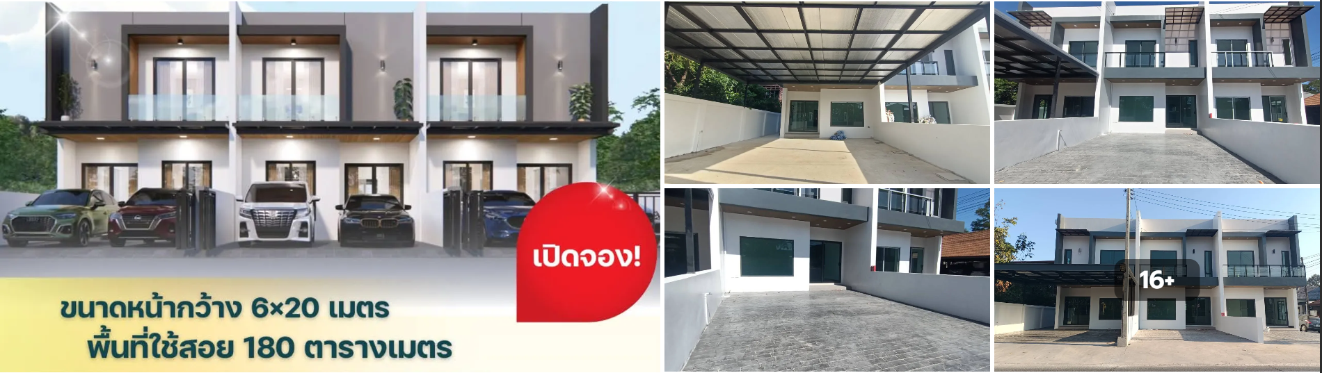 - บ้านแฝด: 3 ห้องนอน 3 ห้องน้ำ 2 ที่จอดรถ