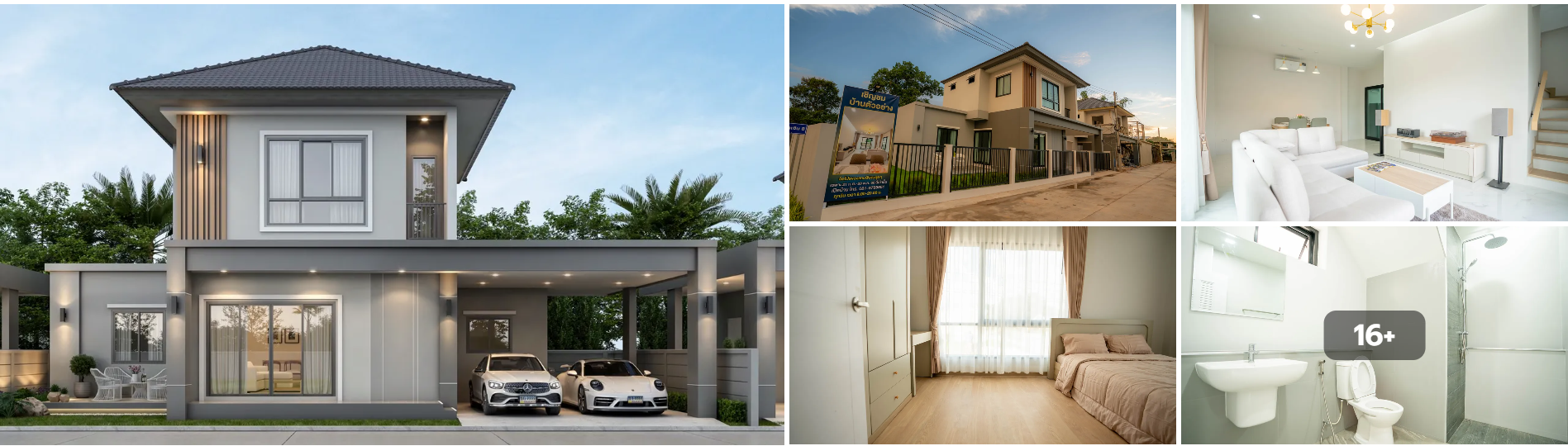 - บ้านเดี่ยว: 4 ห้องนอน 3 ห้องน้ำ 2 ที่จอดรถ