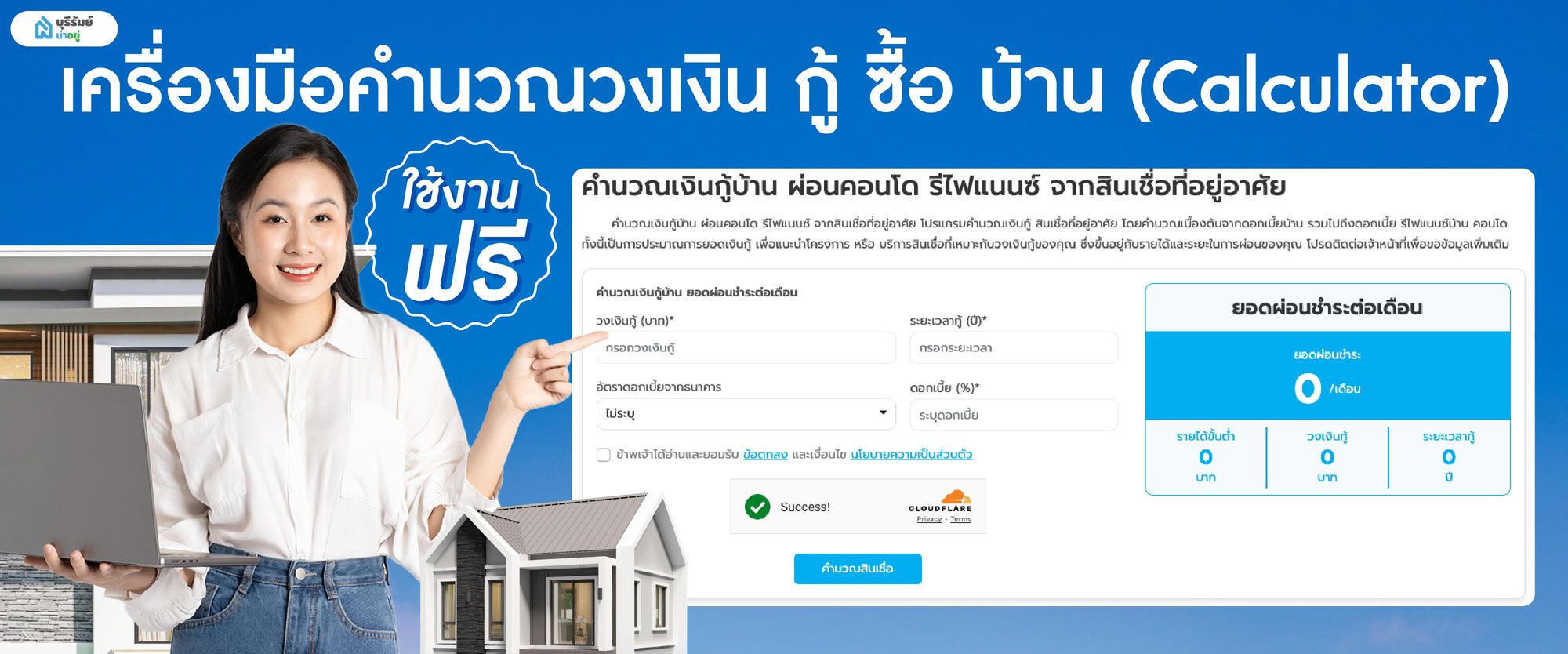 - กดคำนวณ! ระบบจะบอกเลยว่า " ควรมีรายได้ขั้นต่ำเท่าไหร่ " และ "ต้องผ่อนเดือนละกี่บาท"