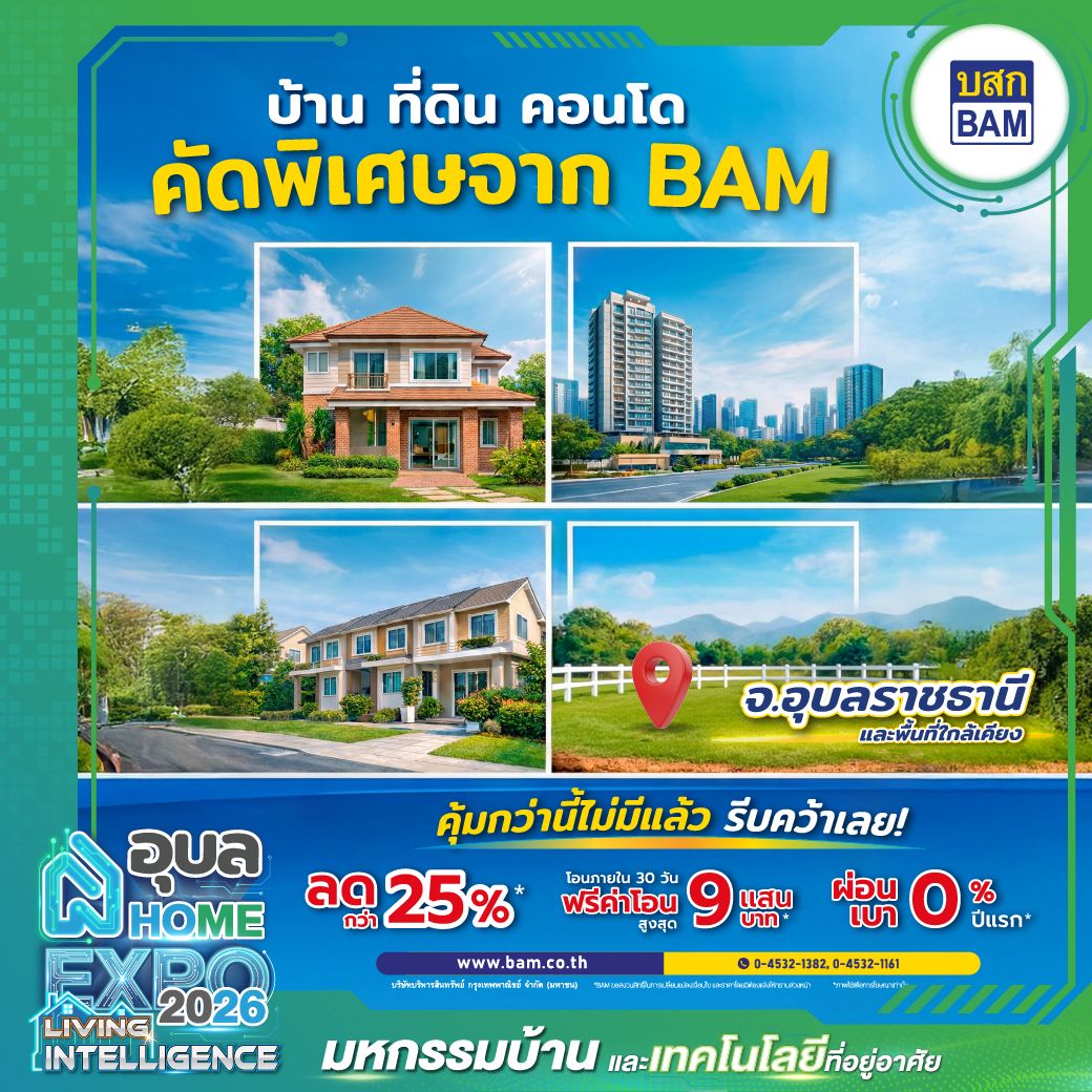 สำหรับใครที่กำลังมองหาจังหวะการลงทุนที่คุ้มค่าหรือบ้านพร้อมอยู่ในฝัน งาน Ubon Home Expo 2026: Living Intelligence คือโอกาสที่ไม่ควรพลาด เพราะมีการรวบรวมรายการที่ดินและบ้านมือสองในอุบลราชธานีกว่า 1,000 รายการ ที่คัดสรรมาแล้วว่าอยู่ในทำเลศักยภาพและราคาจับต้องได้ ผู้ที่สนใจสามารถ ลงทะเบียนรับสิทธิ์และโปรโมชันมากมายได้ที่นี่เลย เตรียมตัวให้พร้อมแล้วไปพบกันตั้งแต่วันที่ 26 กุมภาพันธ์ - 2 มีนาคม 2569 ณ ลานอะควาเรียม ชั้น 1 Central Ubon เพื่อสัมผัสประสบการณ์ตามสโลแกน "อุบลน่าอยู่ ครบทุกเรื่องที่อยู่ ของคนอุบล"