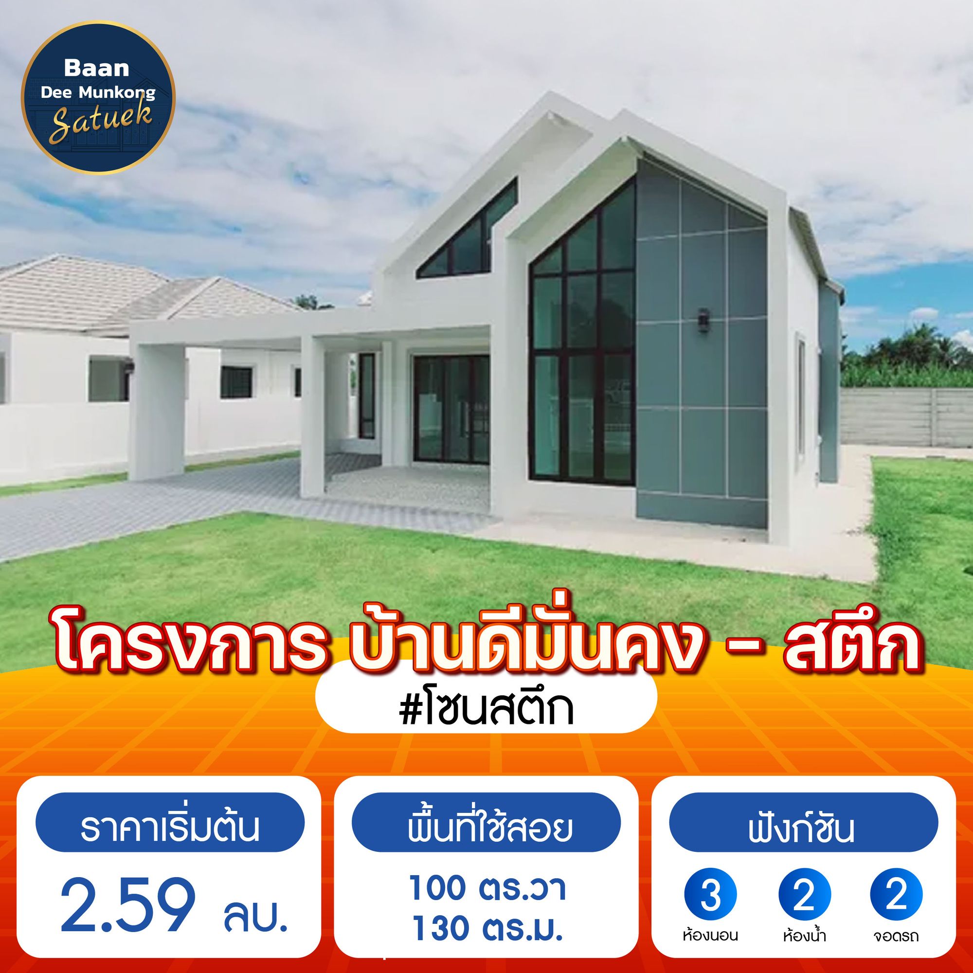 ไปกันต่อที่อำเภอสตึก และนี่คือโครงการ บ้านดีมั่นคง สตึก โครงการนี้ตั้งอยู่ในอำเภอสตึก บรรยากาศธรรมชาติ ภายในโครงการมีให้เลือกถึง 3 แบบ 3 สไตล์ ทั้ง บ้านสไตล์นอร์ดิก บ้านสไตล์โมเดิร์นทรอปิคอล และ บ้านสไตล์คอนเทมโพรารี่ สำหรับครอบครัวเล็กก็มีแบบห้องนอน 2 ห้อง หรือจะเป็นครอบครัวที่ต้องการขยับขยาย ก็มีแบบบ้าน 3 ห้องนอน 2 ห้องน้ำ