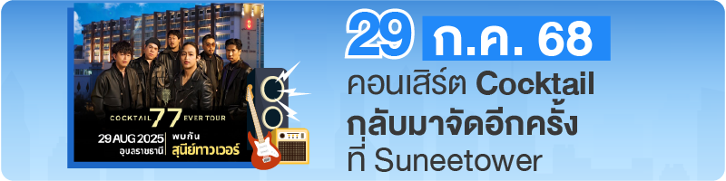 29 ส.ค. 68 คอนเสิร์ต Cocktail กลับมาจัดอีกครั้งที่ Suneetower