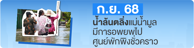 ก.ย. 68 น้ำล้นตลิ่งแม่น้ำมูล มีการอพยพไปศูนย์พักพิงชั่วคราว
