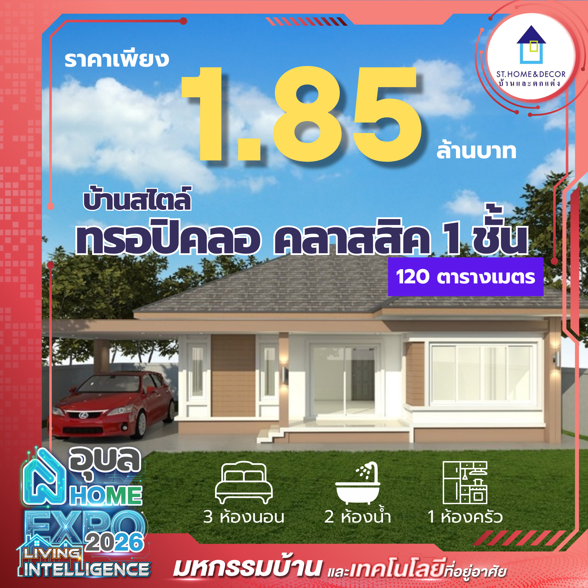 ใครกำลังมองหาไอเดียสร้างบ้านหรืออยากมีบ้านในฝันเป็นของตัวเองบ้าง? อุบลน่าอยู่ขอบอกเลยว่าห้ามพลาดงาน Ubon Home Expo 2026: Living Intelligence มหกรรมบ้านและเทคโนโลยีที่ใหญ่ที่สุดในบ้านเรา งานนี้เค้าขนแปลนบ้านสวยๆ มาให้เลือกมากกว่า 500 แบบ จากบริษัทรับสร้างบ้านชั้นนำทั่วเมืองอุบล รับรองว่าเดินงานเดียวได้ทั้งไอเดียและแรงบันดาลใจกลับไปเต็มกระเป๋าแน่นอน เตรียมตัวให้พร้อมแล้วมาเจอกันที่ลานอะควาเรียม ชั้น 1 เซ็นทรัล อุบล วันที่ 26 ก.พ. - 2 มี.ค. 2569 นี้